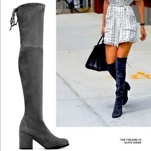 Selling a pair of slate grey Stuart Weitzman over the knee Tieland boots.