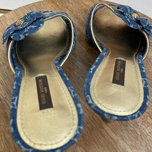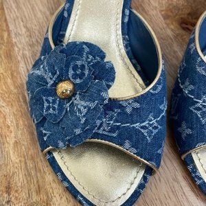 SOLD Louis Vuitton Denim Monogram Flower Slide Sandals