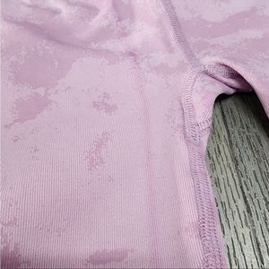 Matching 7/8 Think Twice Dew Drop leggings have a stripe accent on the waistband. And bottom of legs.