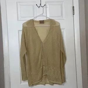 DESCRIPTION Boho Long sleeve Button Up No tag but measured to be a large.