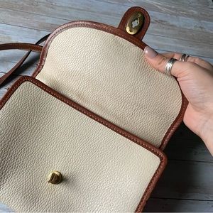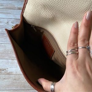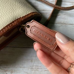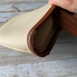 Super cute vintage authentic Coach brand crossbody bag. White leather, flap closing. From the 1980s. A little bit of damage on the edges (see photos) but not too noticeable. Other than that, minimal signs of wear.