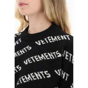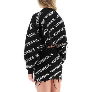 Vetements loose-fit merino wool knit sweater with jacquard monogram pattern and ripped hemline. Finished with ribbed crew neck and cuffs. The model is 177 cm tall and wears a size XS. Material: 100% WE. SKU: 231396DMA000002-BLKWH Bag length: 0. Bag height: 0. Bag depth: 0.