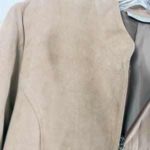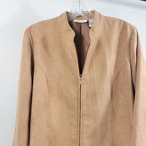 Studio Works Women's Tan Faux Leather Lined Full Zip Light Weight Coat Jacket