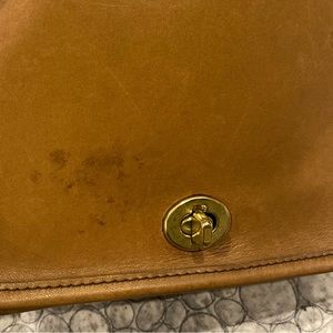 🤎 great vintage condition, buttery leather with stains on the front flap. I like the used and loved look and this one has it without looking worn and old.
