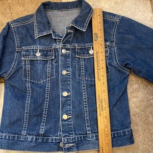 Gymboree jean jacket. Girl or boy, unisex. Khaki color collar and wrist cuffs.
