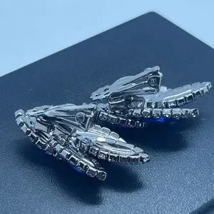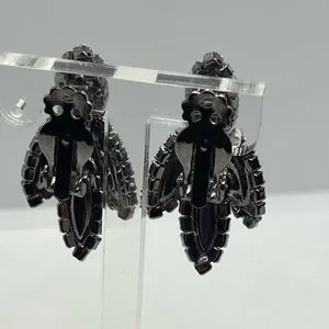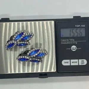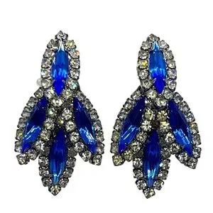 Stunning blue and clear rhinestone sparkly dangle clip on silver tone earrings