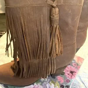 Gently Worn - Chestnut Brown Color with fun fringe detailing and small block heel.