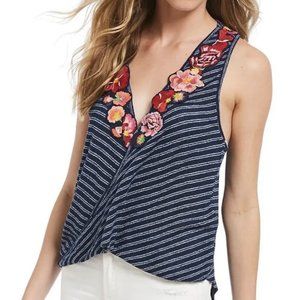 Free People Wrap sleeveless top with floral applque