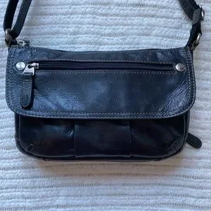 FOSSIL Black Leather Crossbody Wallet Purse Bag