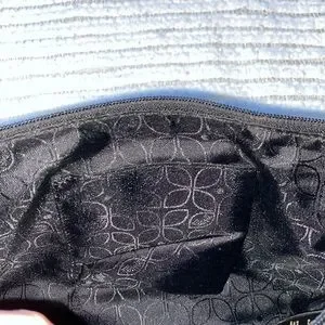 Silver toned hardware with designer name
