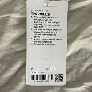 NWT lululemon crescent tee. Size 2 color natural
