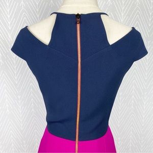 Beautifully constructed color block mid length dress by Roland Mouret. Full length back zipper, side pockets. Simply gorgeous.