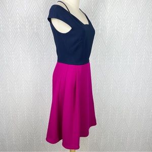 ROLAND MOURET Natan Dress in Orchid Pink and Navy Blue.
