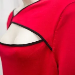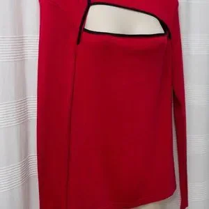 Red with Black Trim Long sleeve Sweater. Not clingy around the stomach area. Soft fabric. Great with jeans or a skirt.