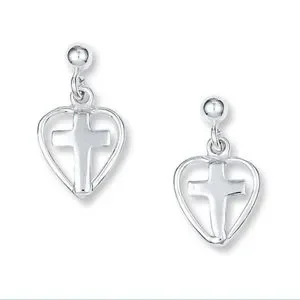 Beautiful vibrant sterling silver heart shaped cross earrings