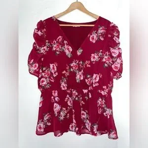 NWOT Maurices gorgeous floral ruched sleeves layered