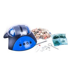 Kit includes 13 different types of rough rocks like Rose Quarts, Amethyst, Tigers Eye, Sodalite and more. Use the built in timer to get unique results with different types of stones and tumbling conditions. Includes 12 bags of polishing grit. Once the rocks are fully transformed, it's time to display the beautiful gems. Use the included fashion rings, key chain and necklace settings to make custom jewelry or proudly display them on a shelf. The high quality and durably constructed rock tumbler has easy to follow tumbling instructions for kids 8 and older. Perfect activity for children to learn about geology and start a new hobby!