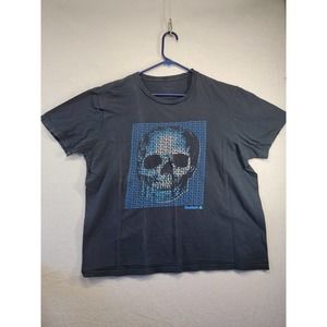 Reebok Vintage black tshirt with blue and white skull design, sz XL