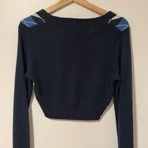 This cardigan is almost new. Wore it a few times and got complimented. It’s a medium so it fits more loosely than tight. It’s also cropped a bit too!