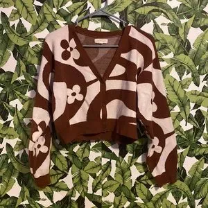 Brown and white 70s theme sweater