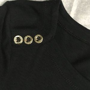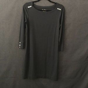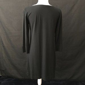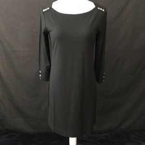 UPF 50+ Straight fit dress with boat neckline and gold button detail at shoulder and cuff.