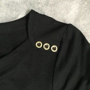 The straight fit, gold button details, and flattering boat neckline make this dress our go-to for sunny day style.