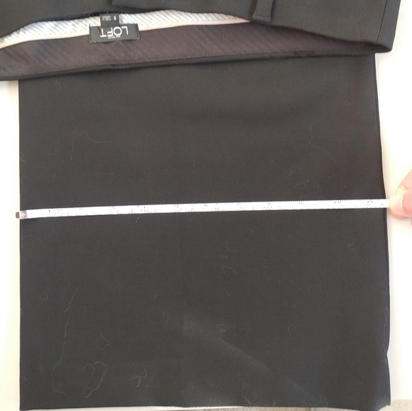Front pockets, can open pocket seam or keep sewn shut as faux pocket. Front zip with hook and bar closure. Belt loops. Back pockets with button closure. Size 8