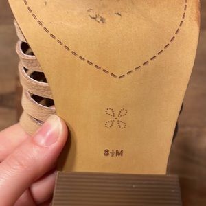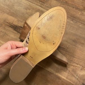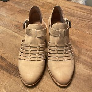 Huarache inspiration amplifies the vintage vibes of this airy stacked-heel bootie. Sizing: True to size. M=standard width - Almond toe - Adjustable buckle strap - Leather construction - Stacked heel - Approx. 3" heel - Imported