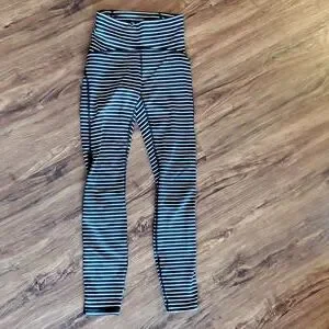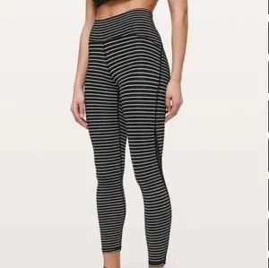 LuluLemon Black/White Striped Train Times Mesh 7/8’s Size 2