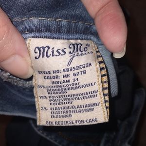 Miss Me skinny jeans. Size 30. No rips or stains, but starting to wear above rear pockets. See pictures for details. Smoke free, pug friendly home.