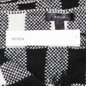 NWT Aqua Buffalo Plaid Wrap Rectangle Fringe Scarf One Size Black White Plaid