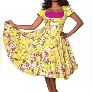 SOLD | Pinup Girl Clothing Laura Byrnes Alfred Small Dress Hawaiian Baton Ruge