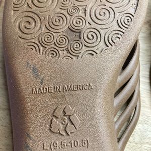 Okabashi Venice Jelly Slides Woven Straps Sz L Chocolate Brown Made in USA
