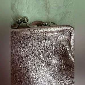Brighton Crossbody Purse Rosalie Flower Rose Metallic Pink Leather