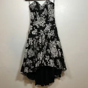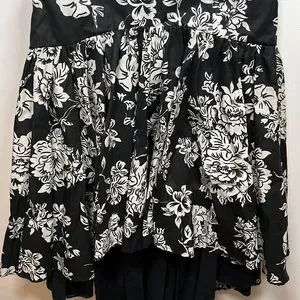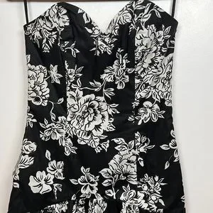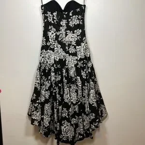 VINTAGE strapless dress/gown black and white floral print size 10