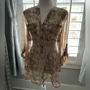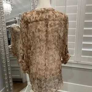 Excellent condition, like new Apt. 9 pull-over sheer top. V neck with detailed button closure. Detailed front pockets. Animal print. Beautiful for the office or date night!