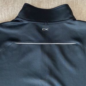 Calvin Klein black pullover in a size large is made of 92% polyester and 8% spandex. It has a zippered closure on the collar which can be worn high or low. It has been worn but in great condition