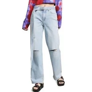Cotton Citizen Distressed Belted Boyfriend Jeans in Sunset Wash