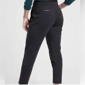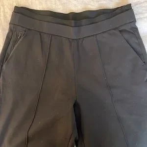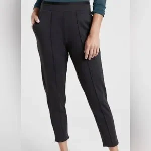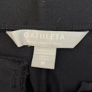 Athleta Venice Pintuck Pant. Black, size medium. Good, used condition with one flaw - pull in elastic on waistband as seen in photos. Otherwise, fabric is in great condition. Sleek, everyday pant.