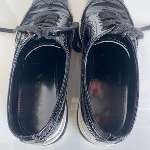 PRADA SS 2011 Black Brushed Leather Wingtip Brogues Derby Creeper Sz 37/US 6.5-7