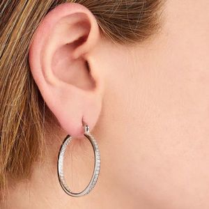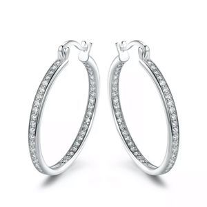 White Gold Swarvoski Crystals Hoop Earrings NEW