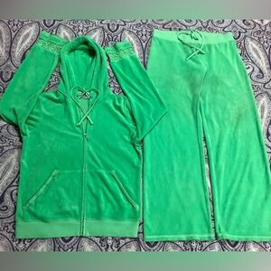 Juicy Couture Terry pants 32 x 30 crochet trim zip up hoodie tracksuit