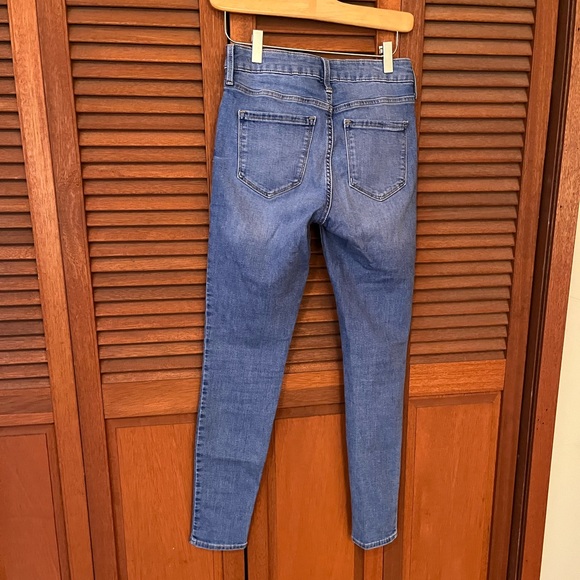 Size 4 mid rise rockstar super skinny jeans. Lots of stretch. 29” inseam. I am 5’9” and they are a great length.
