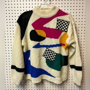 Retro Patterned Pullover Sweater Ladies Size M