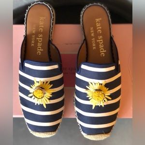 The Solero espadrilles from kate spade new york are adorned with nautical stripes and topped with a sun appliqué.