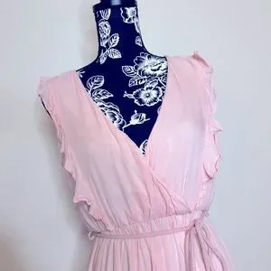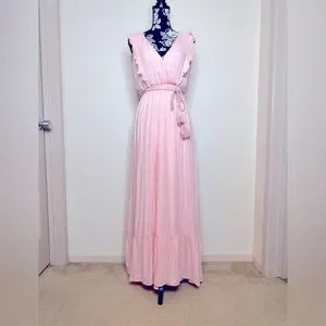 Dress Day Maxi Dress Soft Pink Tie Waist Belt Size M