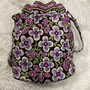 Crossbody bucket bag with solid base and cinch top. Has two magnetic pockets in front and zipper compartment inside. In EUC, minimal wear washed and clean. Used by non smoker.