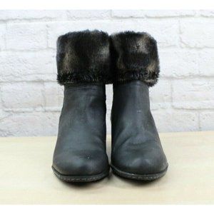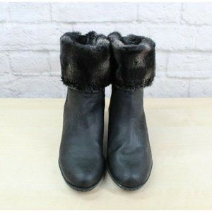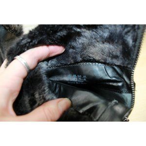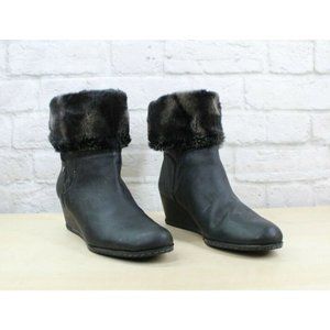 Franco Sarto Anorak Black Leather Faux Fur Back Zip Winter Wedge Boots Size 9 M
