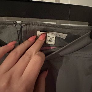 This is a gray beautiful suit jacket and skirt. Suit jacket is a size 12 and the skirt is a size 14. Worn once and dry cleaned.