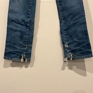 These jeans started there life out brand new off the locale country store shelf. Then they went to work on the ranch where they worked hard day in and day out, and although they have acquired some scratches, cuts, rips, tears and stains, they are still a solid piece of American history.